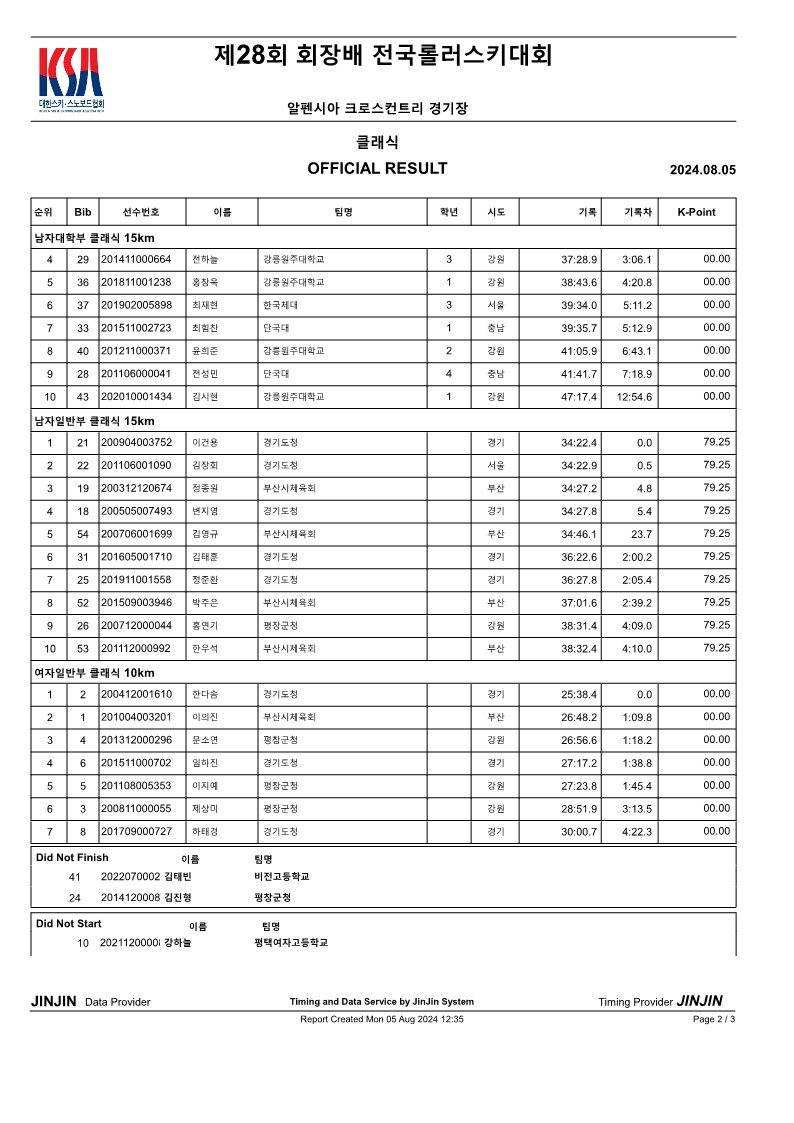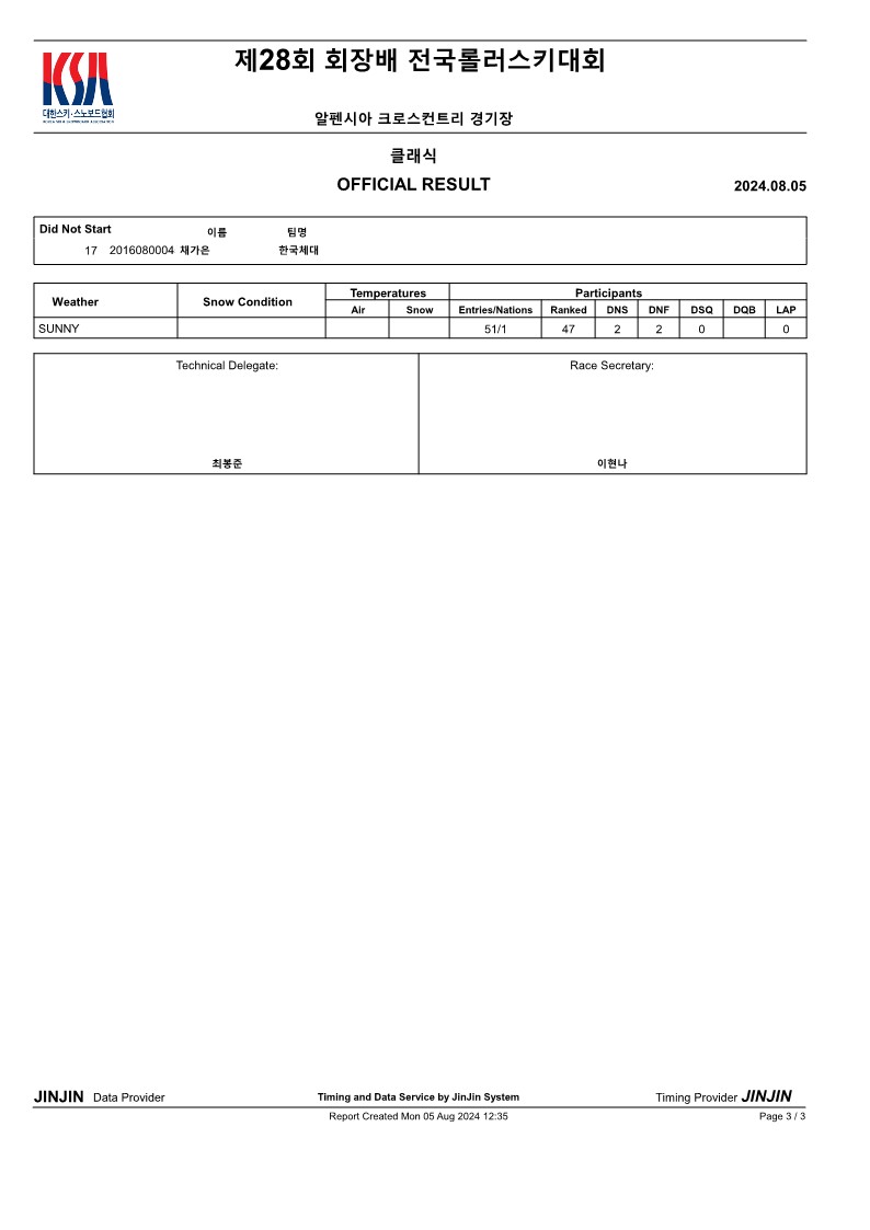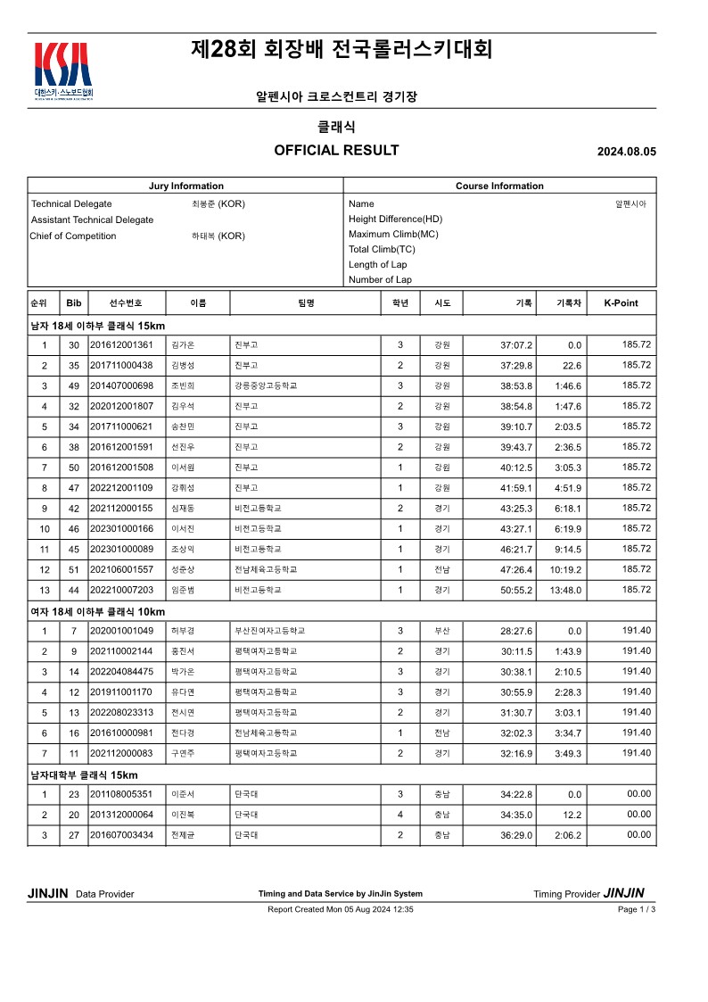 제28회 회장배 전국롤러스키대회 및 FIS Summer Race(클래식 국제 남자 공식결과)