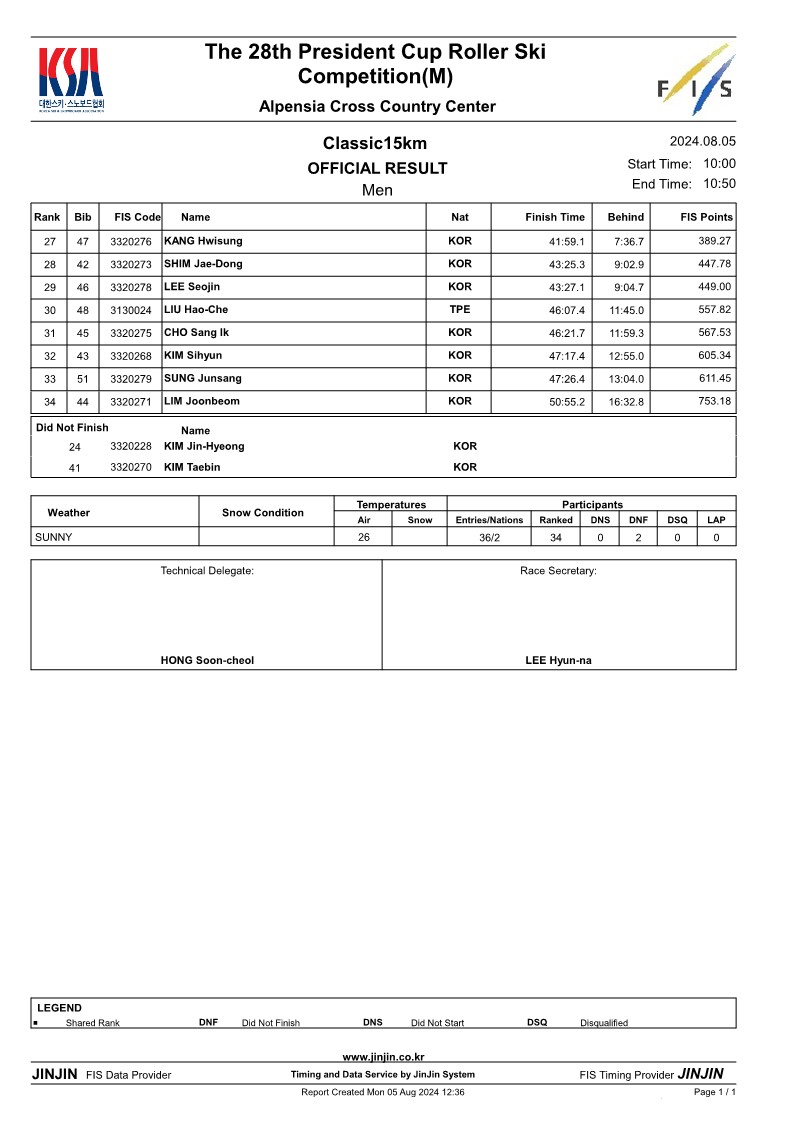 제28회 회장배 전국롤러스키대회 및 FIS Summer Race(클래식 국제 남자 공식결과)